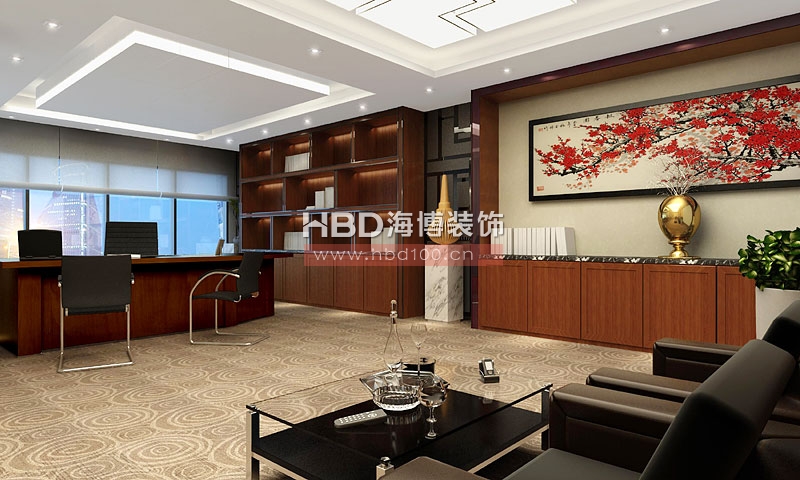 二級吊頂高度:辦公設計裝修二級吊頂高度一般就往下吊20cm,另外也得看辦公設計裝修層高,要是層高很高,也可增加每級的厚度。層高矮,每級也可稍微2~3公分,不可太少,否則裝不下燈管,不裝燈的話,每級往下吊5公分即可。