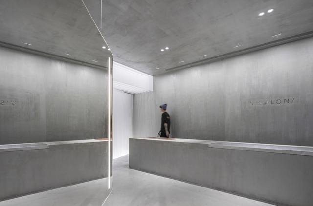 今天廣州裝飾公司為你分享這個(gè)第一眼沒(méi)認(rèn)出是美發(fā)店的案例,據(jù)說(shuō)這個(gè)項(xiàng)目的要求非常多,不能有任何的固定隔墻,所有空間中可見(jiàn)的墻體,必須是可以移動(dòng)的,像吧臺(tái)鏡子和各種柜子都得是能移動(dòng)的,這個(gè)地方并不大,要滿(mǎn)足理發(fā)店的所有功能需求,這不容易,何況還要很有設(shè)計(jì)感。室內(nèi)的設(shè)計(jì)以塊面的穿插,鏡面的反射來(lái)趣味整個(gè)空間,非常高級(jí)且有藝術(shù)感的灰色形成多個(gè)平面交替,最后用一抹藍(lán)色來(lái)打破它。